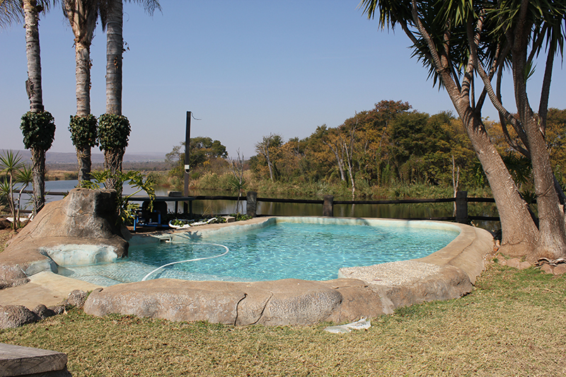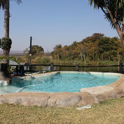 The swimming pool overlooking the rivier and braai facilities for each chalet and cabin are available to guests.