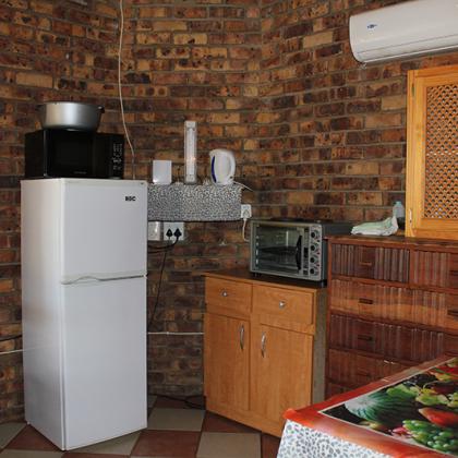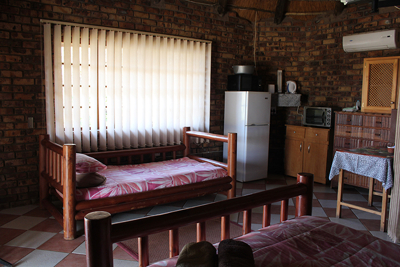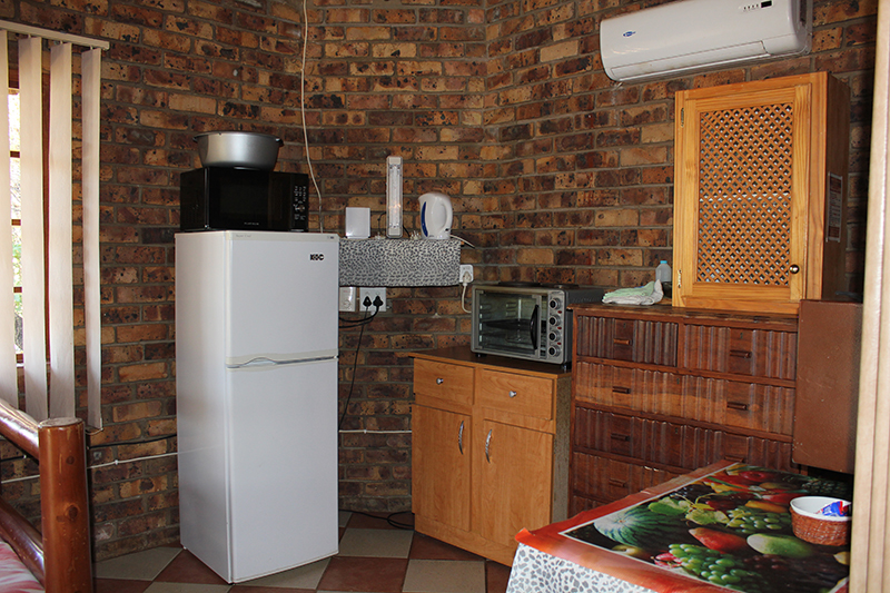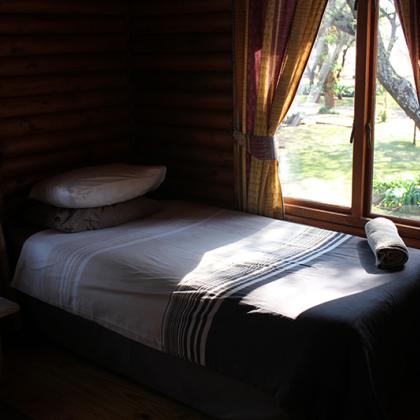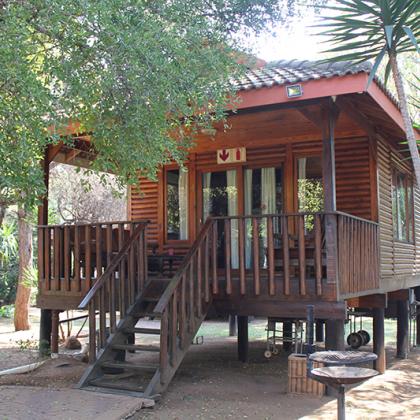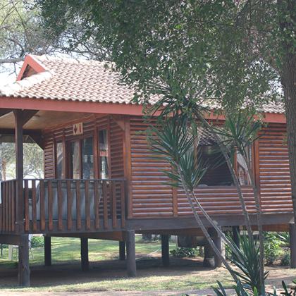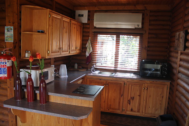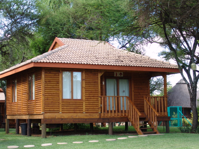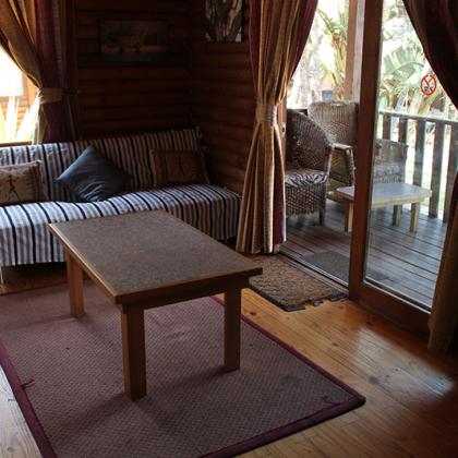 The log cabins are fully equipped, each providing sleeping facilities for 2 - 6 persons. Each cabin has, besides the bedroom(s), a separate bathroom complete with shower/bath, a kitchenette, a lounge and veranda. All the cabins have ceiling fans and DSTV. The kitchenettes are equipped with crockery and cutlery as well as microwave ovens and a refrigerator-freezer combination.